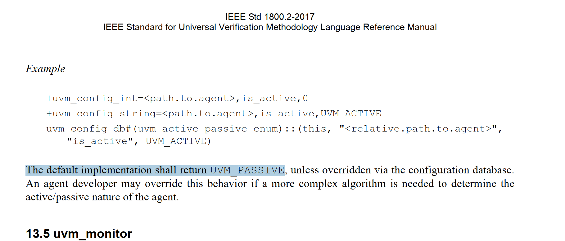 “The default implementation shall return UVM_PASSIVE, unless overridden via the configuration database.“