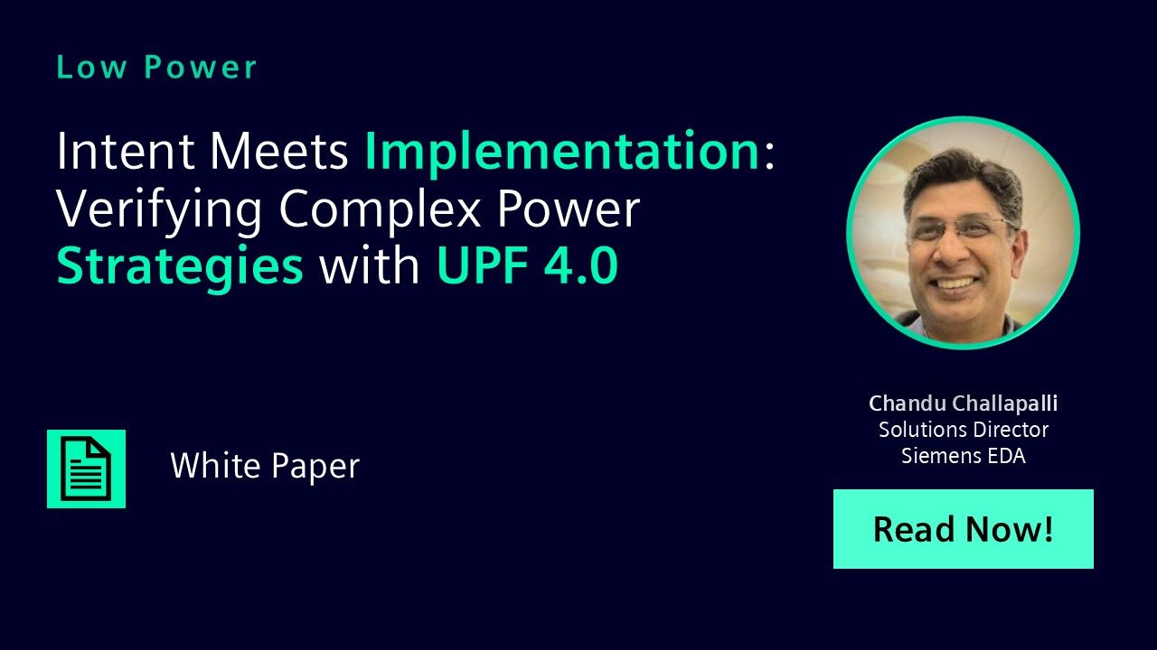 Questa One Sim PowerAware supports several of the most commonly used features available in UPF 4.0. This white paper takes a deep dive into UPF 4.0. What’s new, why it matters and how it fits into the evolving landscape of SoC design. We’ll start with a look at how UPF has grown over the years and why version 4.0 is a significant step forward for teams building large, power-aware systems. We'll also walk through practical tips and real-world challenges that teams face when rolling out UPF 4.0.