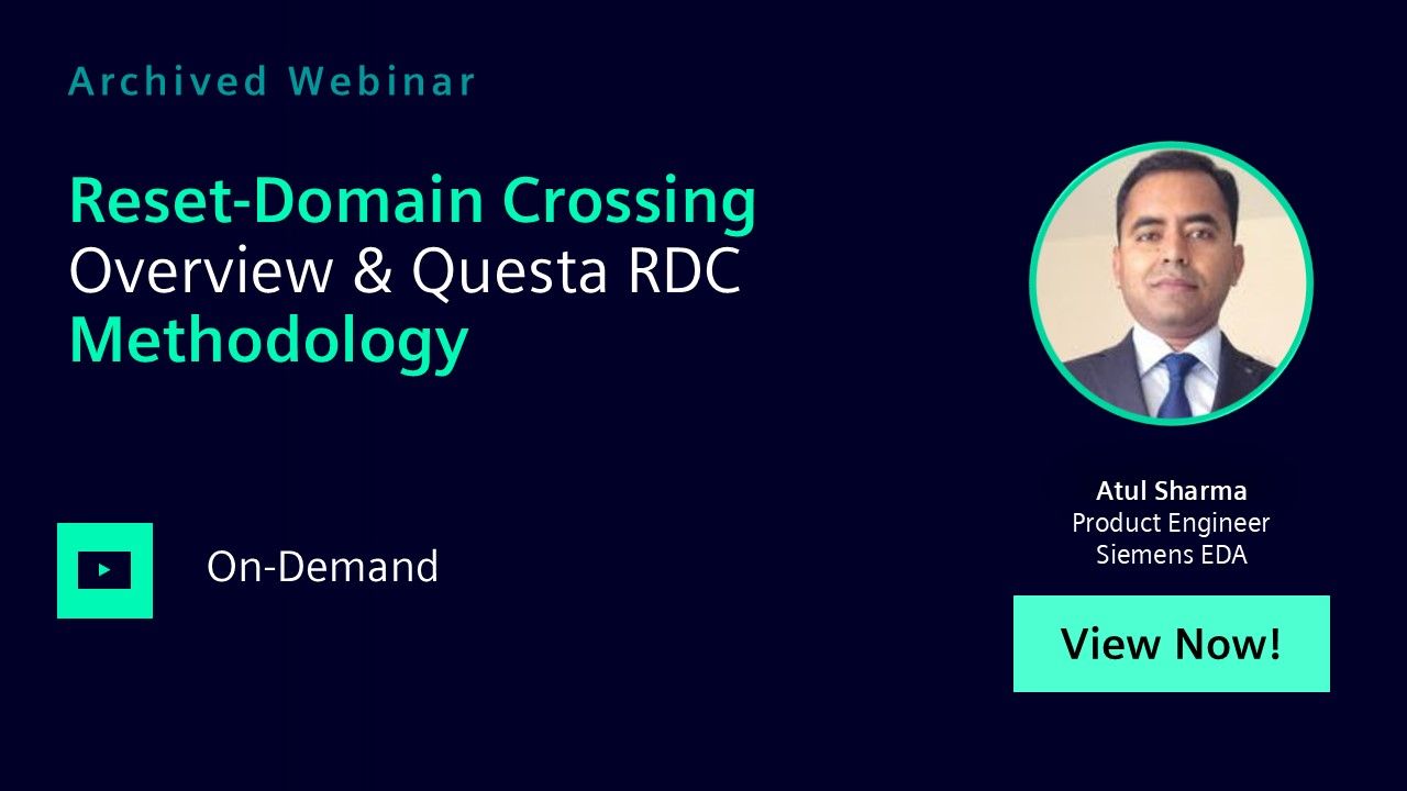 In this session, you will learn more about Reset-Domain Crossing problems and methods to address it. Then you will be introduced to the Questa RDC solution, how it catches true RDC issues and what is our proposed methodology of RDC flow to filter noise and have better QoR.