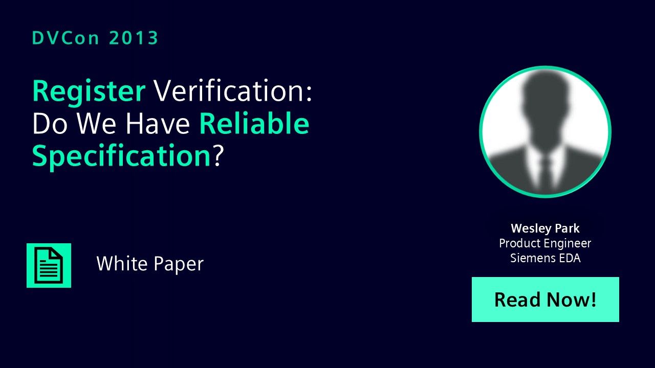 IP designs contain many externally accessible registers, referred to as memory-mapped registers, that are used to control behavior, check status, and transmit and receive data. The implementation complexity of memory-mapped registers is relatively low compared with other design elements. Hence, register verification, the verification of memory-mapped registers, is mostly done by directed or lightly randomized simulation test benches and is viewed as a tedious job.